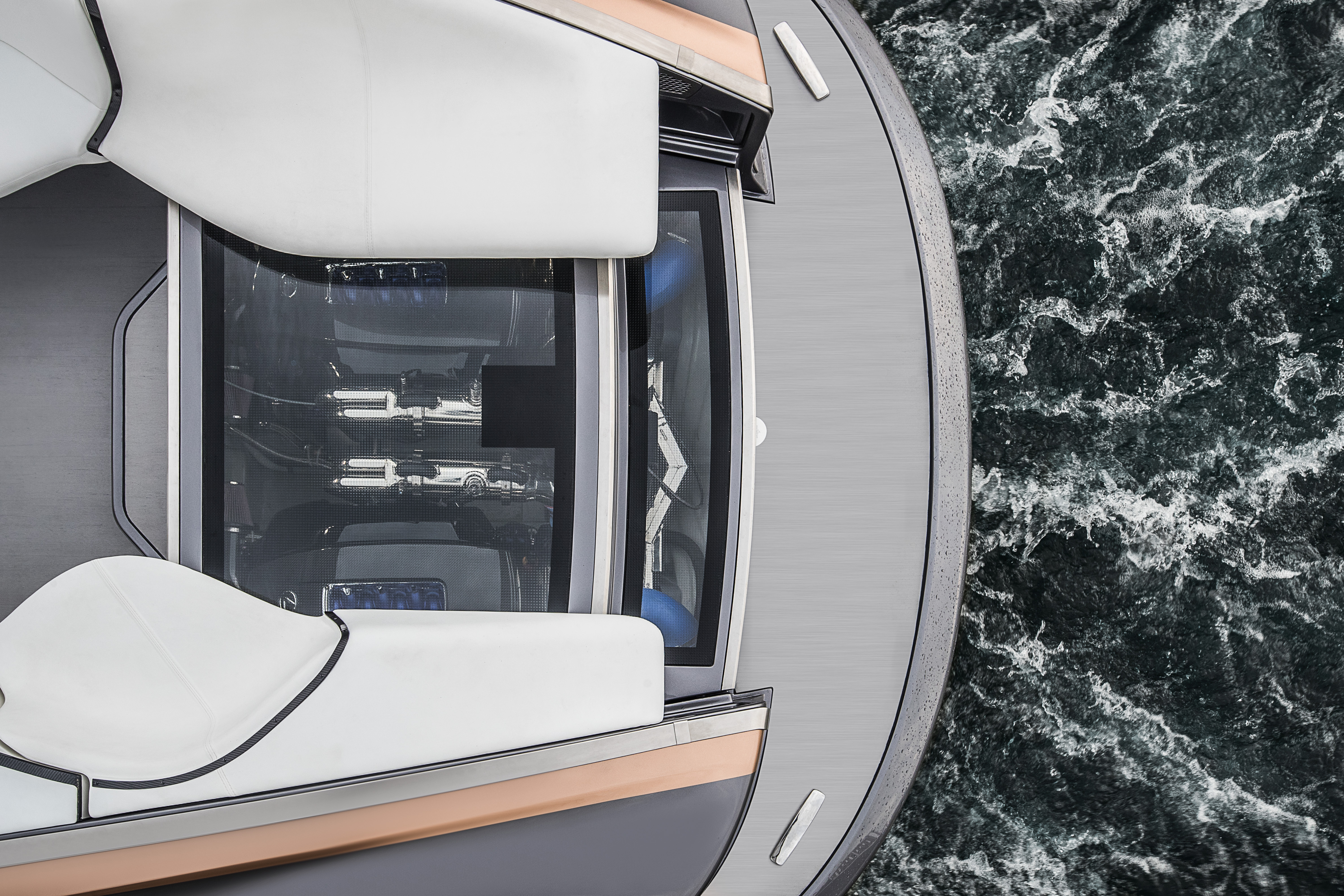 This yacht follows the concept of their twin-V8 powered sport yacht which was unveiled in 2017 in partnership with Toyota Marine Division.