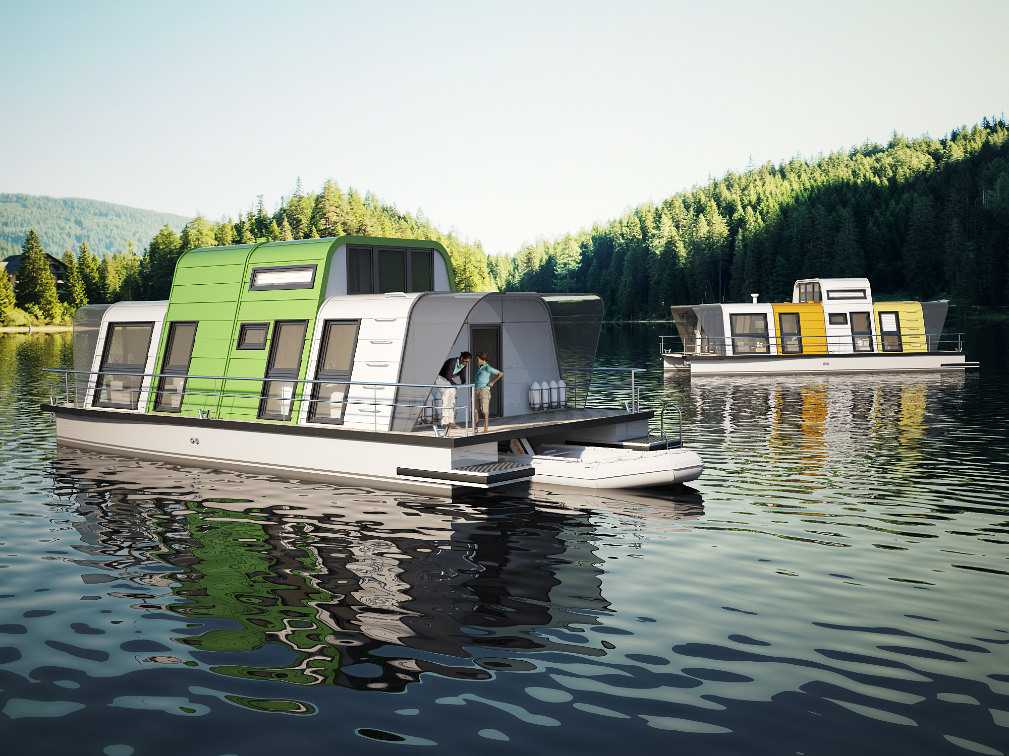 Max Zhivov has created the houseboat concept with the idea of an eco holiday village in mind, where Modul GO can be rented for a vacation.