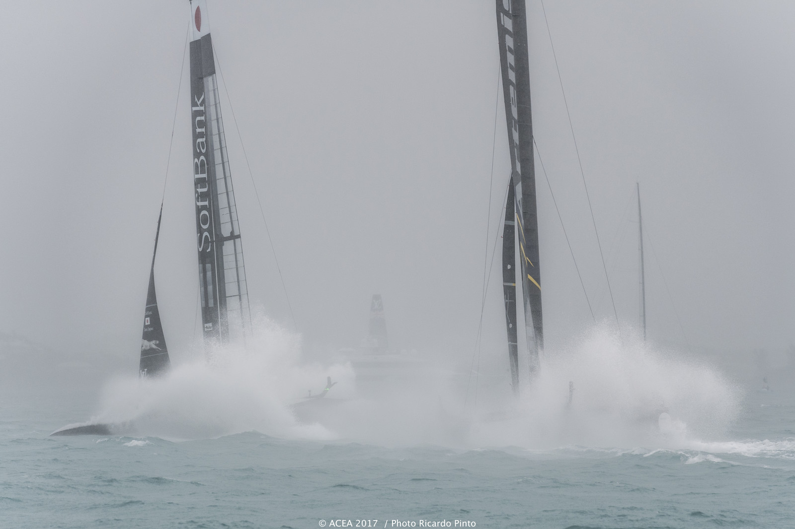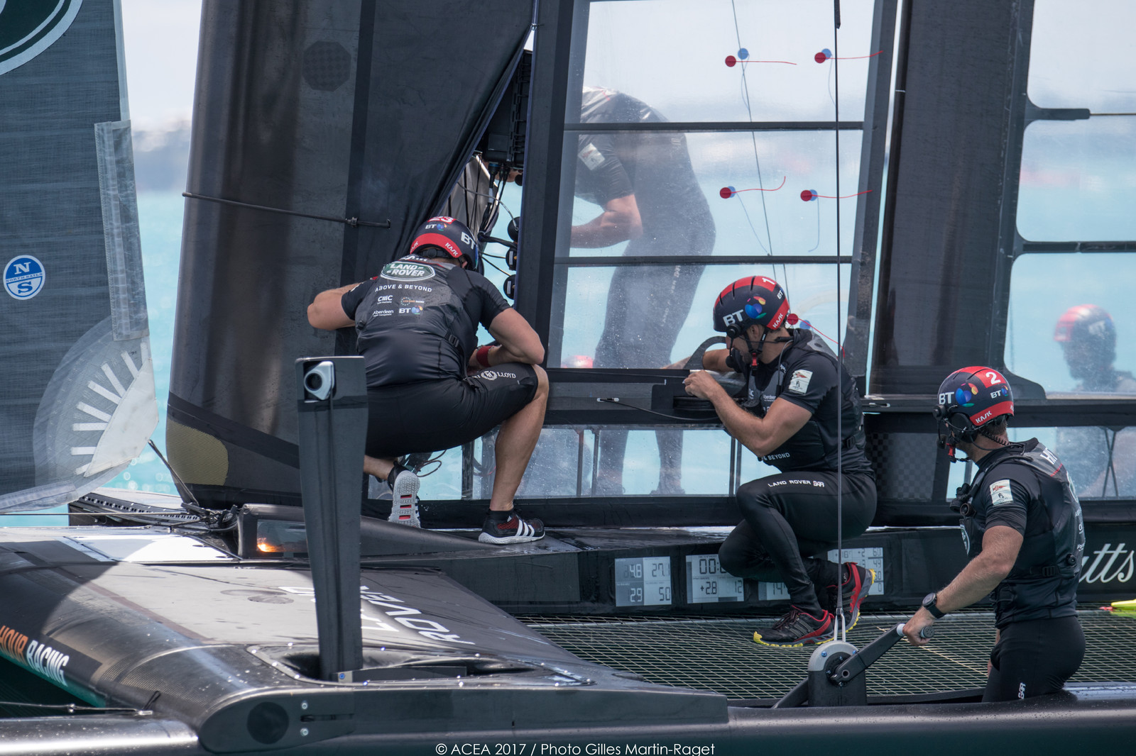 Describing the racing on the second day of the Challenger semi-finals, Land Rover BAR skipper, Sir Ben Ainslie, said: “It was unbelievable racing in gusts up to 27-28 knots. Certainly, in thirty years of racing boats, it was the most full-on, exhilarating moment I’ve ever had. It was incredible out there.”
