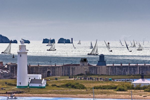 As the fleet funnels out of the Solent there will also be a good chance to see the yachts from Yarmouth on the Isle of Wight, and Hurst Castle on the mainland. Further along the coast Anvil Point, St Alban’s Head, and Portland Bill should each give a good view of the race on its outbound leg.