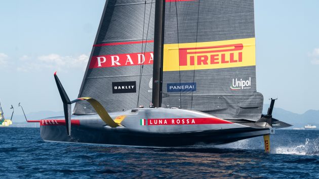 There’s a lot of grinding and faring to be finished before we can apply the paint. We used Awlcraft 2000 paint from Awlgrip in Snow White and Moon Dust. Then…
